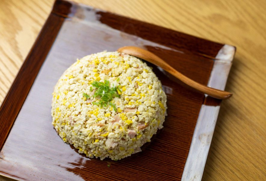 石豆富は水分が少ないので、潰して炒めるだけで簡単に「ソイライス」ができます。